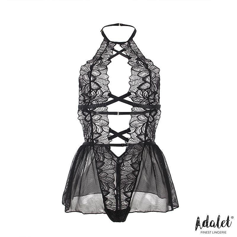 ADALET LINGERIE Ariella Open Back Teddy with Floral Pattern, průsvitné body s otevřenými zády
