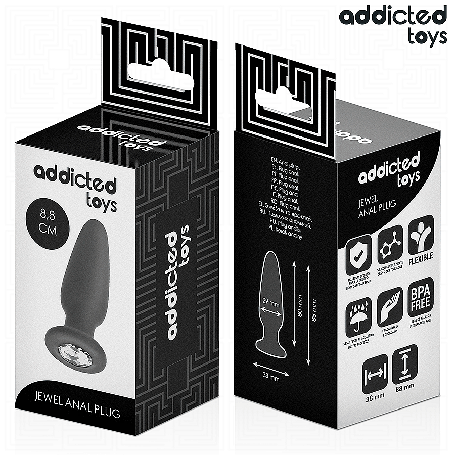 Addicted Toys Anal Plug With Jewel Silicone Size S vás hladce uvede do světa anální hry a zanechá po sobě jiskřivý dojem. Je kompaktní a rafinovaný, takže se krásně nosí i po delší dobu. Tělo z lékařského silikonu je sametově hebké na dotek a flexibilní, aby se přizpůsobilo vašemu tempu. Ergonomický tvar podporuje snadné zasouvání, zatímco rozšířená základna se šperkem nejen láká očima, ale zároveň drží vše bezpečně na místě. Velikost S je ideální pro začátečníky – poskytuje plnost bez zbytečného přepínání, a přitom dovolí si hrát déle a pohodlněji. Hladký povrch klouže s kapkou vodního lubrikantu snově a bez tření. Každý milimetr je promyšlený – od kompaktní výšky přes příjemnou šířku až po zasunovatelnou délku, která nabízí kontrolu i jemnou intenzitu.