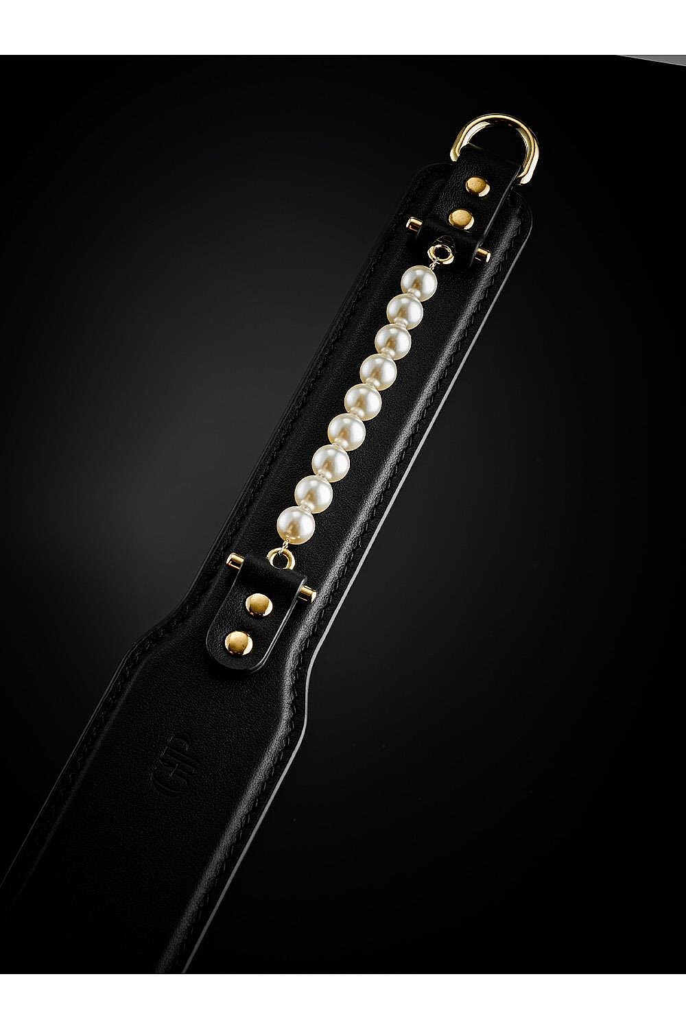 Guilty Pleasure Prestige Pearl Paddle spojuje eleganci a výkon v jednom. Je vyrobena z hebké černé veganské kůže, která lahodí pokožce a zanechává hladké, smyslné doteky. Perlově zdobená rukojeť dodává nádech luxusu a z každého úderu dělá svůdný rituál. Vyvážená konstrukce umožňuje jemné poťukávání i důraznější zásahy – vždy kontrolovaně a bezpečně. Flexibilní hlava přesně vede pohyby a dovolí hravě střídat intenzitu podle nálady. Zlatavé kovové detaily září jako šperk a umocňují pocit exkluzivity. Lehká ergonomická rukojeť skvěle padne do ruky a neunaví ani při delším použití. A po akci? Uložte ji do přiloženého sáčku a nechte ji čekat na další rozkošné povely.