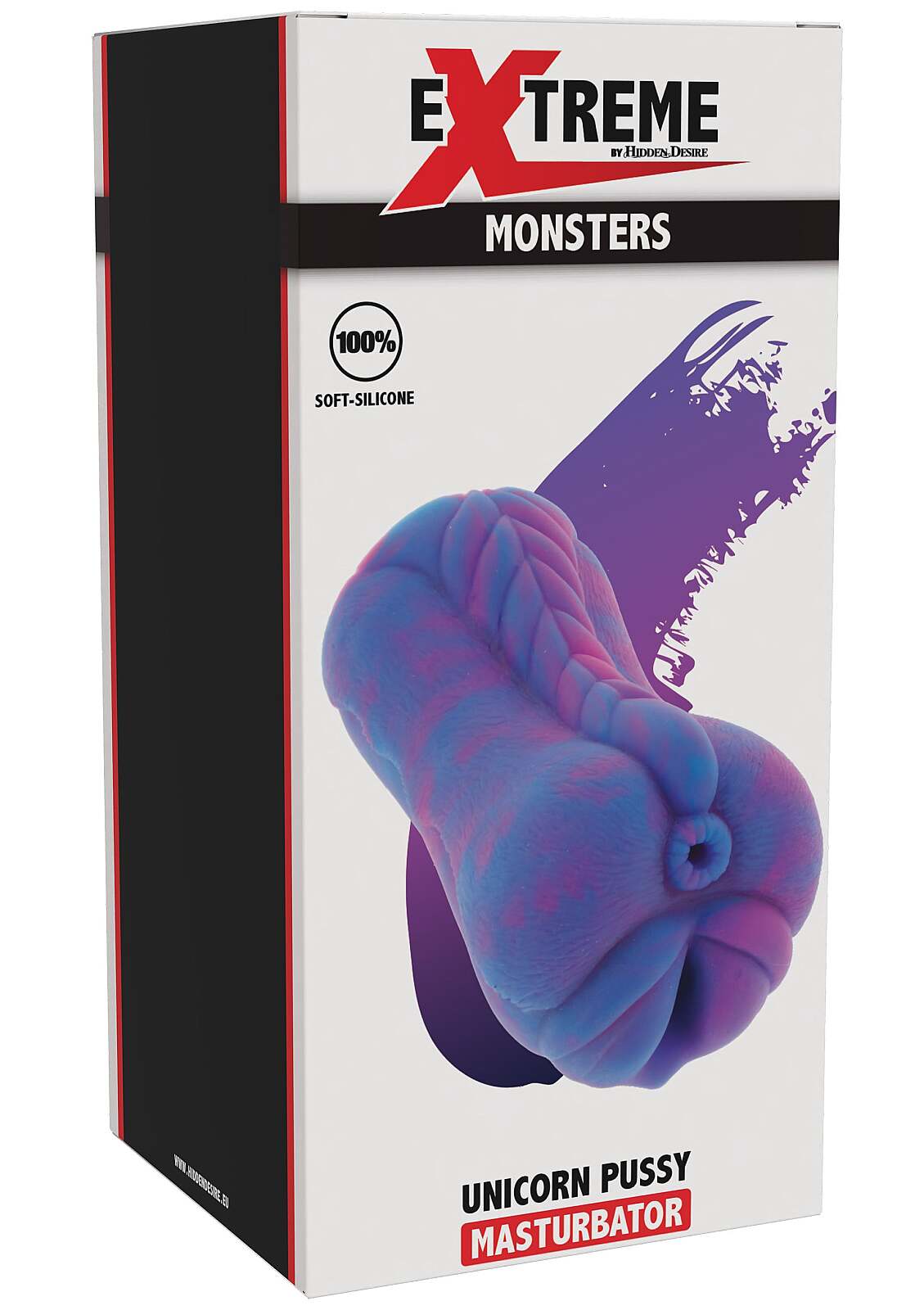 Hidden Desire Extreme Unicorn Pussy Masturbator od značky Hidden Desire přináší neotřelý erotický zážitek inspirovaný divokými fantaziemi. Je vyroben z ultra realistického tekutého silikonu, který působí mimořádně věrohodně na dotek a dopřává příjemně hebký, poddajný kontakt. Dvojitý vstup v podobě vaginální části o délce 14,5 cm a těsnější anální části o délce 9 cm otevírá prostor pro střídání stimulace i objevování nových pocitů. Nechybí ani praktická stránka: neporézní a body-safe silikon usnadňuje hygienu, čištění i pravidelnou péči. Fialové provedení dodává této masturbační pomůcce výrazný, fantazijní a provokativní vzhled, který okamžitě zaujme.