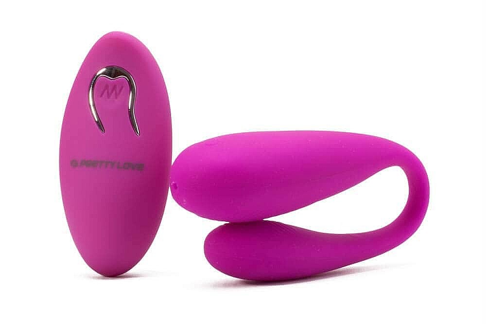 Párový vibrátor Pretty Love Aldrich pro stimulaci ženského klitorisu, bodu G a partnerova penisu. 12 vibračních režimů. Ovládání na těle vibrátoru nebo dálkovým ovladačem. Nabíjecí. Až 80 minut na jedno nabití. Z příjemného silikonu.