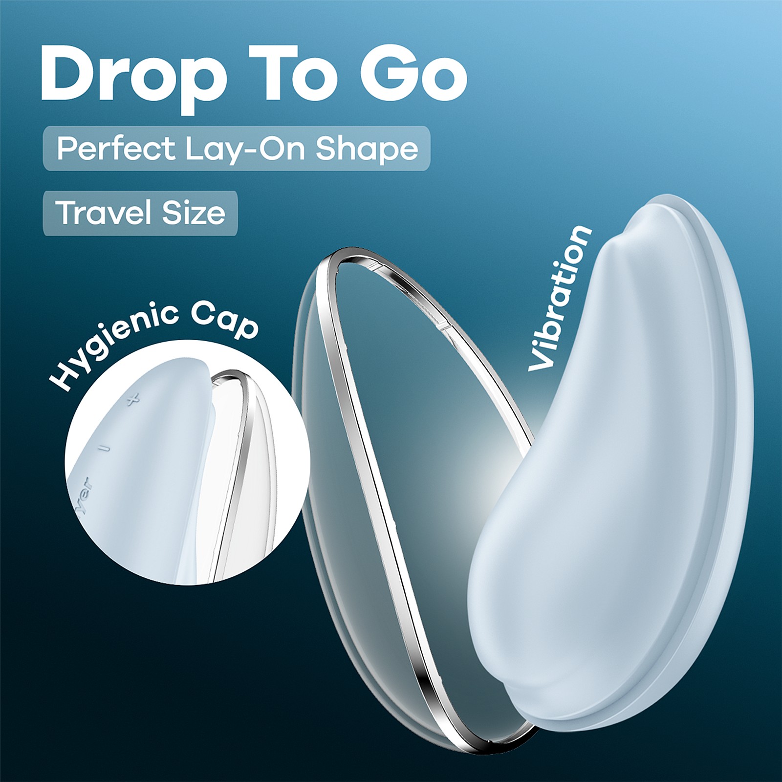 Satisfyer Drop To Go (Blue) je přikládací vibrátor ve tvaru kapky, který padne do dlaně a něžně přilne ke klitorisu. Jeho 12 vibračních programů tě provede od jemného šimrání až po pulzující extázi. Extra hebký lékařský silikon s dvojitou vrstvou hladí kůži sametem a zůstává maximálně hygienický. Hygienické ochranné víčko dělá z hračky diskrétního parťáka do kabelky i na dovolenou. Vodotěsnost IPX7 zve na hrátky ve sprše i ve vaně, kde kapka odhalí svou smyslnou povahu. Výkonný a tichý motor šeptá tak potichu, že si slast můžeš vychutnat nerušeně. Rychlé USB‑C dobíjení tě nenechá čekat a snadná údržba zajistí připravenost pro další kolo. Vhodné pro začátečnice i fajnšmekry – ergonomie a přívětivé ovládání tě provedou k cíli s úsměvem.