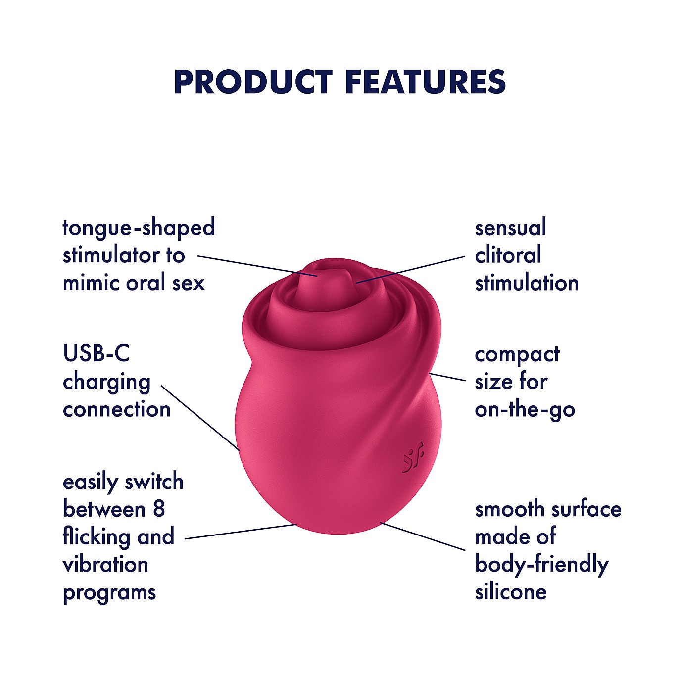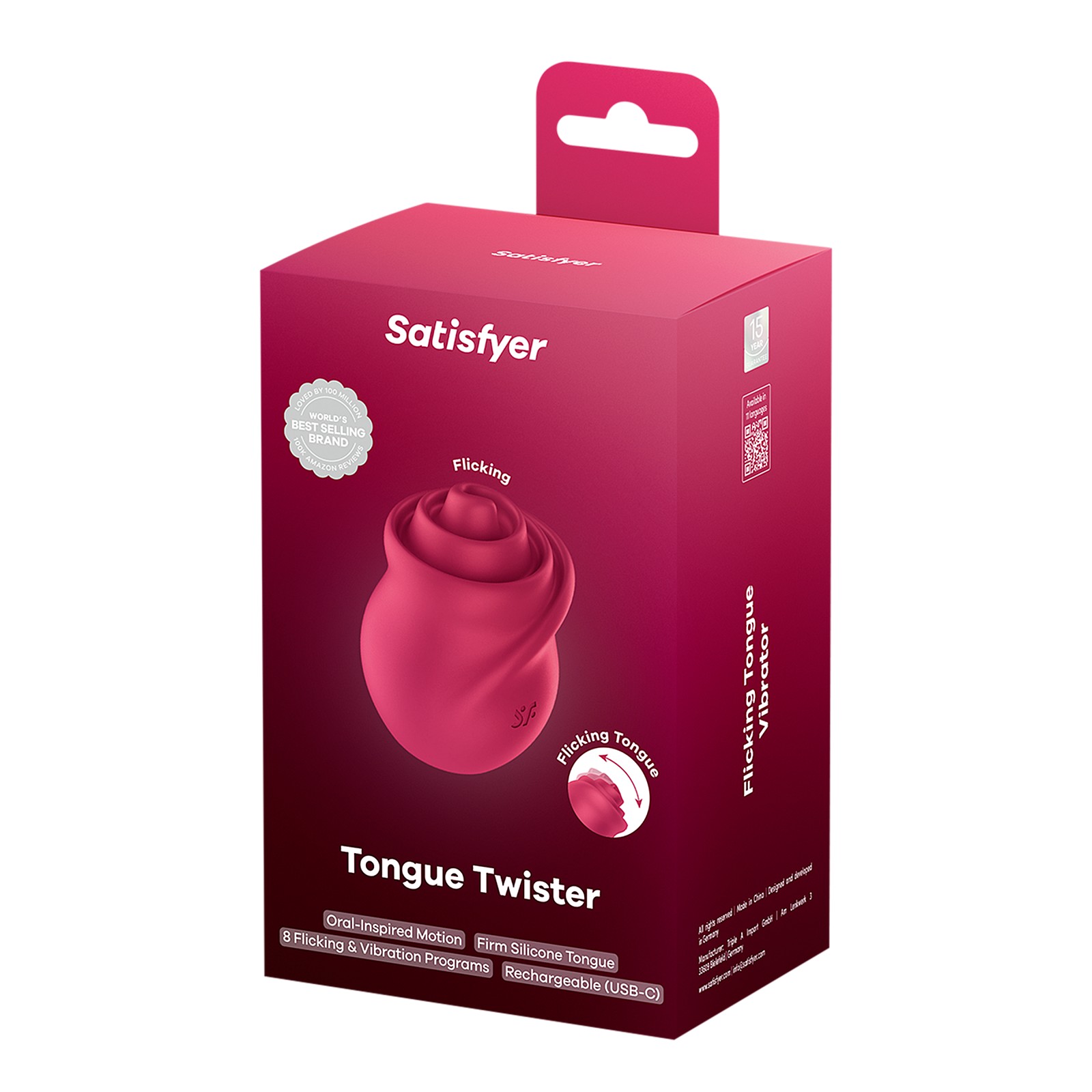 Satisfyer Tongue Twister (Red) od Satisfyer napodobuje pocit orálního sexu kmitající „jazykovou“ špičkou, která hravě škádlí každý milimetr. Silné vibrace se díky superměkkému silikonu přenášejí intenzivně a hebce, zatímco spirálový vnitřek přidává omamné tření. Vyberte si ze 8 režimů kmitání a 8 programů vibrací – od něžného pulzování až po plnou intenzitu. Tlačítka na základně umožní snadné přepínání i v tom nejžhavějším okamžiku a whisper mode udrží vše diskrétní. Celé tělo je vodotěsné IPX7, takže si užijete sprchu i vanu bez omezení. Integrovaná Li‑ion baterie se nabíjí přes USB‑C a hygienický silikon se čistí raz dva – vždy připraveno na další kolo.
