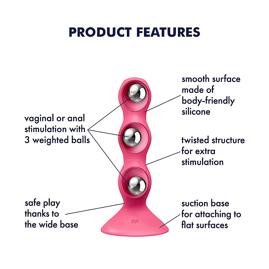Satisfyer Triple Ball-R (Red) sází na přirozenost – tři vnitřní zatížené kuličky reagují na každý tah a vytvářejí hluboké, syrové a vzrušující vjemy. Satisfyer Triple Ball-R (Red) svým hladkým, tělu přátelským silikonem klouže komfortně při vaginálním i análním zasunutí a zve k hravé stimulaci bez vibrací. Přísavná základna se pevně přichytí na hladký povrch pro bezstarostné hands‑free dobrodružství a zároveň je kompatibilní s postrojem, takže si párové hraní snadno okořeníte strap‑on akcí. Unisex konstrukce dává svobodu každému tělu a každé fantazii. Vodotěsnost IPX7 otevírá brány sprchám i koupelím, kde se touha rozlévá ještě hlouběji. Snadná údržba ukazuje, že tahle hračka je stvořená pro časté, intenzivní a nespoutané používání. S Satisfyer Triple Ball-R (Red) budete dirigovat rytmus, zatímco kuličky rozvibrují vnitřní svět vášně – bez motoru, jen čistá, autentická energie vašeho pohybu.