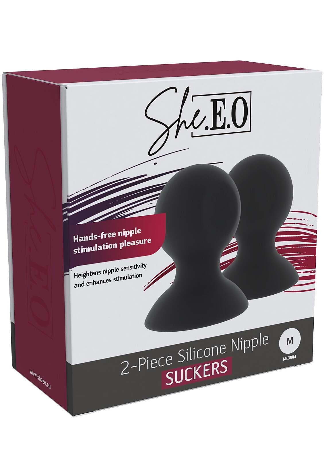 She.E.O Silicone Nipple Suckers M jsou vyrobené z měkkého, pro tělo bezpečného silikonu, který hladí kůži a láká k dalším dotekům. Jednoduchým stiskem vytvoříte pohodlné vakuum, které bradavku zvedne a zvýší její citlivost pro delikátní, ale jasně znatelnou stimulaci. Podtlak drží sám, takže si užijete dráždivé hands‑free škádlení. Ohebný materiál se snadno přizpůsobí a hladký povrch klouže po kůži jako sen. Nasazení i sejmutí je hračka – stačí jemně nadzvednout okraj a rytmus rozkoše máte zcela pod kontrolou. Údržba je snadná a rychlá, takže jste připraveni na další kolo během chvilky. Velikost M nabízí univerzální, příjemné padnutí pro začátečníky i zvědavé milovníky jemných prožitků. Ať už sólo, nebo ve dvojici, každý stisk přinese novou vlnu napětí.